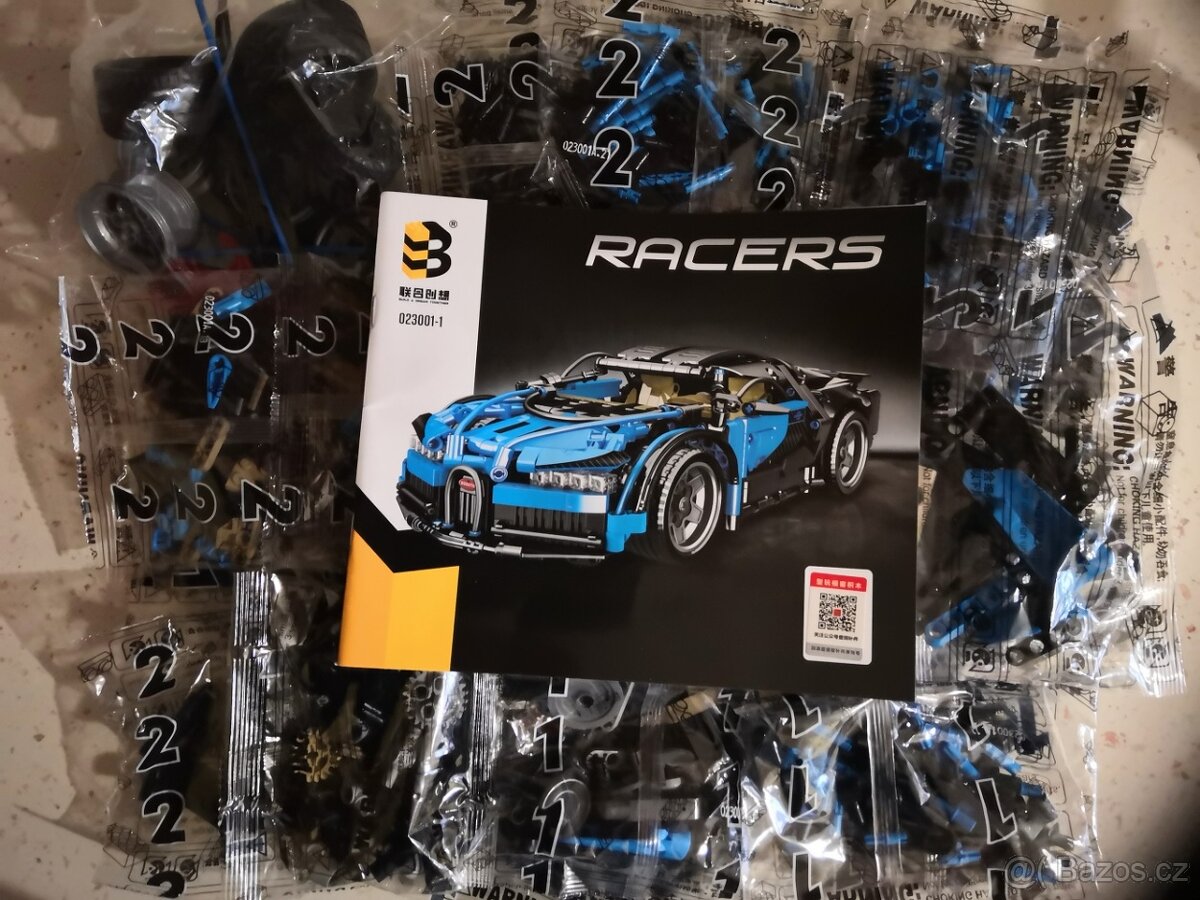 Prodám novou nerozbalenou stavebnici závodního auta Bugatti chiron, kompatibilní s LEGO Technic. Stavebnice je v zapečetěných pet sáčcích v papírové krabici.