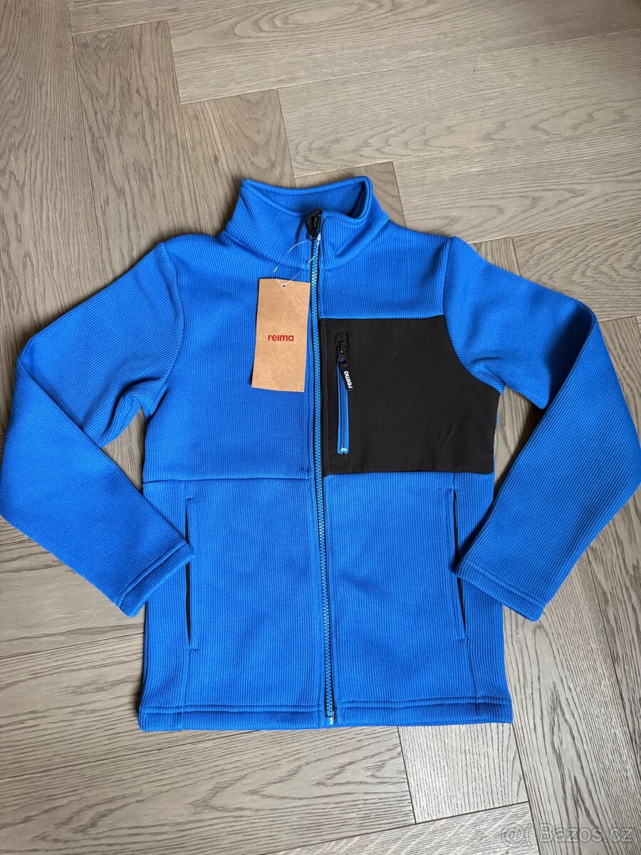 Zcela nová fleecová mikina Reima vel. 140. Elastická. Odvádí vlhkost. Náprsní kapsa. Boční kapsy. PC 1750kč