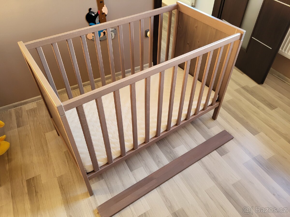 Prodám kvalitní dřevěnou dětskou postýlku. Byla málo využívána. Postýlka má 3 nastavení: 1. Rošt v horní pozici. 2. Rošt v dolní pozici. 3. Rošt v dolní pozici bez boku postýlky. K tomu věnujeme i matraci (Používaná vždy s chráničem matrací). Postýlka je velmi zachovalá! Nyní postýlka sbalená pro převoz. Osobní odběr