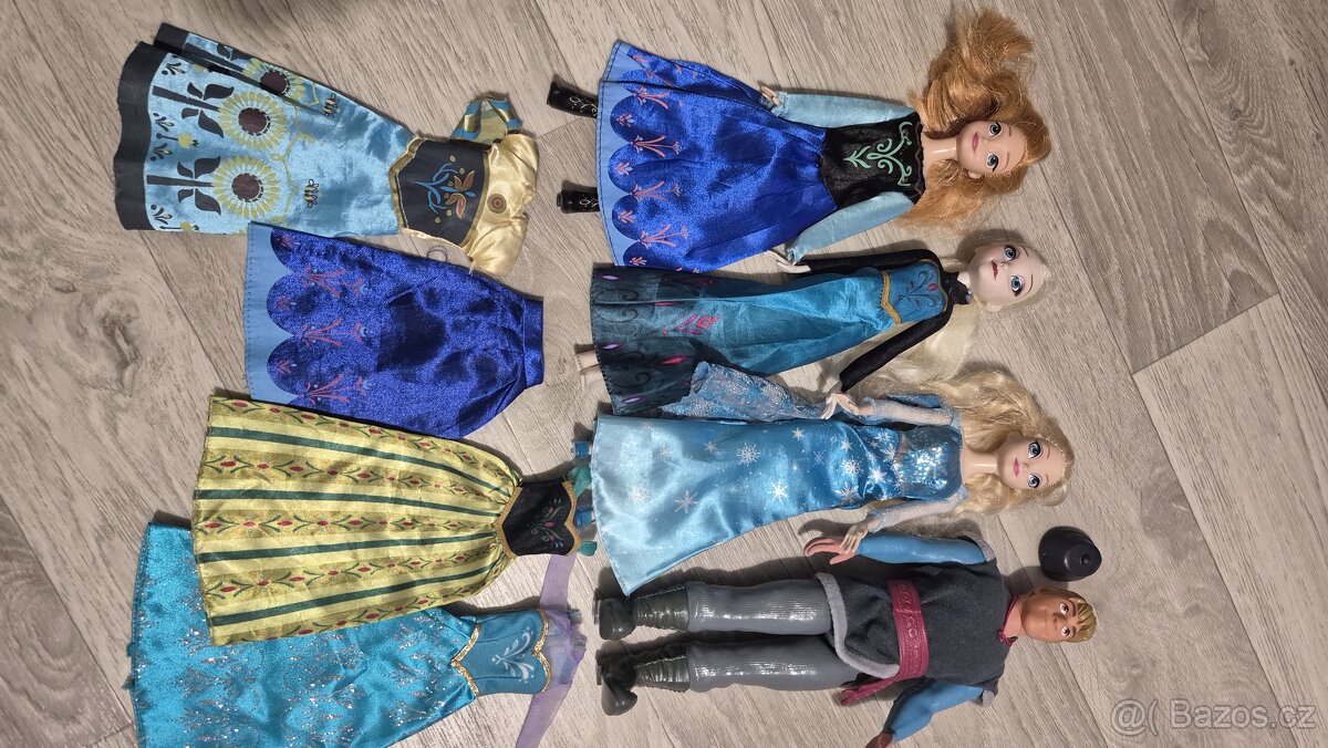 Prodám barbie Elsu 2x, Annu, Kristofa + šaty. Vše hrané. Stav viz foto.