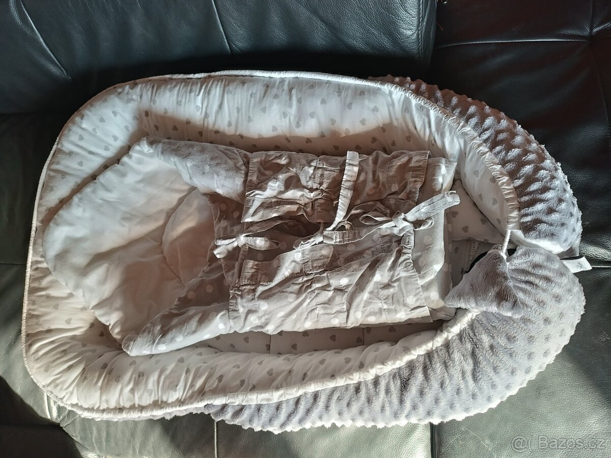 Set do postýlky - [31.1. 2026]Nové hnízdečko šité na zakázku. Pouze vyzkoušeno když jsme přišli z porodnice maličké se v tom nelíbilo. V případě zájmu mě kontaktujte na tel.číslo děkuji