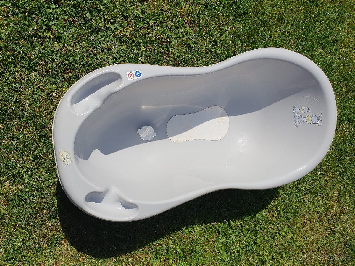 Dětská vanička s lehátkem - [4.2. 2026]V létě jsme vaničku využívali místo bazénku, proto má z vnější strany odřené dno. Vnitřní rozměr je přibližně 35x60 cm - vhodné pro ležícího kojence, ale sedící děti ji užili až do 3 let.