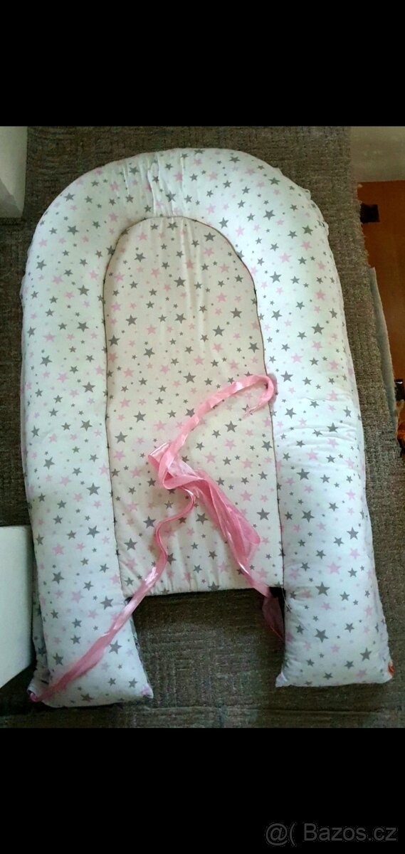 Oboustranné hnízdečko s růžovou mašlí, po 2 dětech, ale stále pěkné, vyprané.