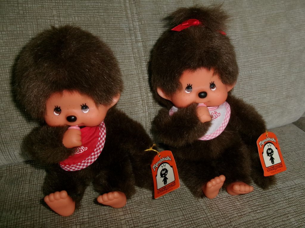 RARITA!Krásný páreček originálních MONCHICHI-holčička s chlapečkem-jsou noví -ještě s originálními visačkami - žádná napodobenina - s dudlíkem,mají jemný kožíšek,značeni SEKIGUCHI-SINCE 1918-měří 20 cm!