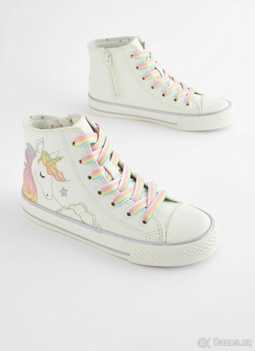 nádherné koženkové tenisky Next, vel 30,5. Délka stélky 20cm. krásná měkká stélka, vypodšívkované bavlnou, jaro ideál. Koupila jsem špatnou velikost, vzaté 2x, TOP stav. PC 850Kč prodám za 350Kč
