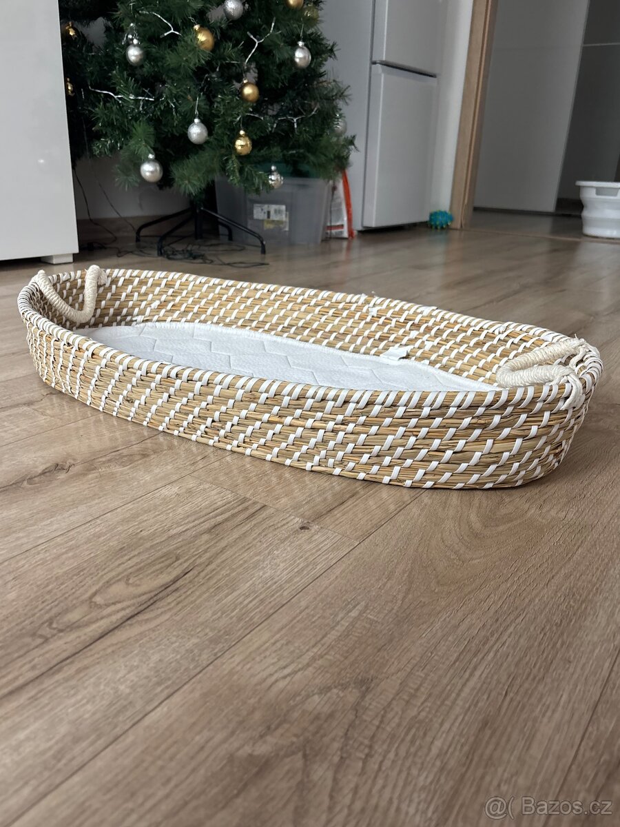 Prodám přebalovací proutěný košík pro miminko, ideální na komodu, postel nebo přebalovací pult. Praktické a zároveň stylové řešení pro každodenní péči o miminko.