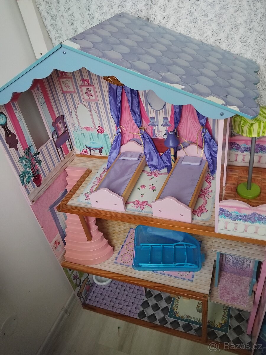 Prodáme hezký domeček pro panenky. V peknem stavu, pár šrámů a místy odlepena tapeta na střeše. Jinak pěkný stav.