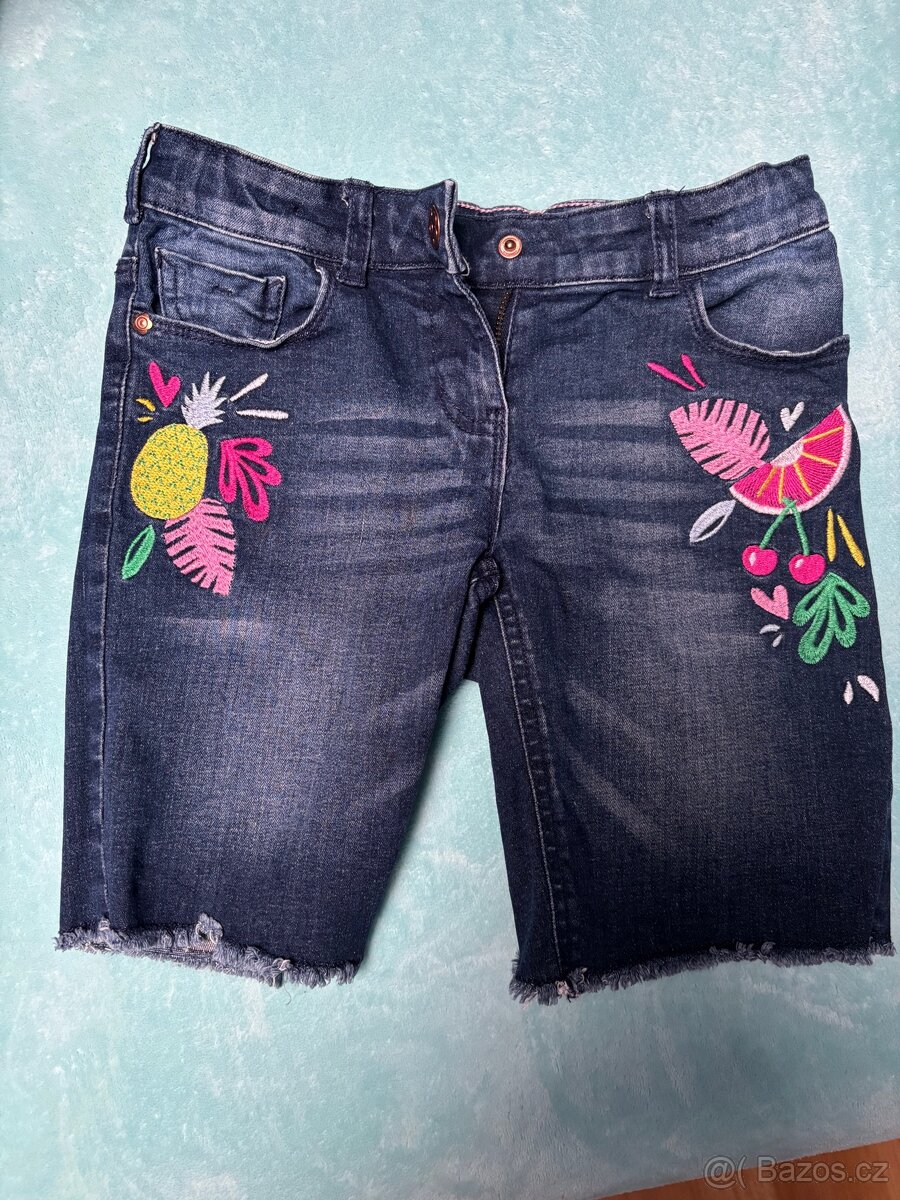 Dívčí džínové kraťasy, Velikost 128, v pase možnost změnit velikost pomocí gumičky a knoflíku, skvělý stav.