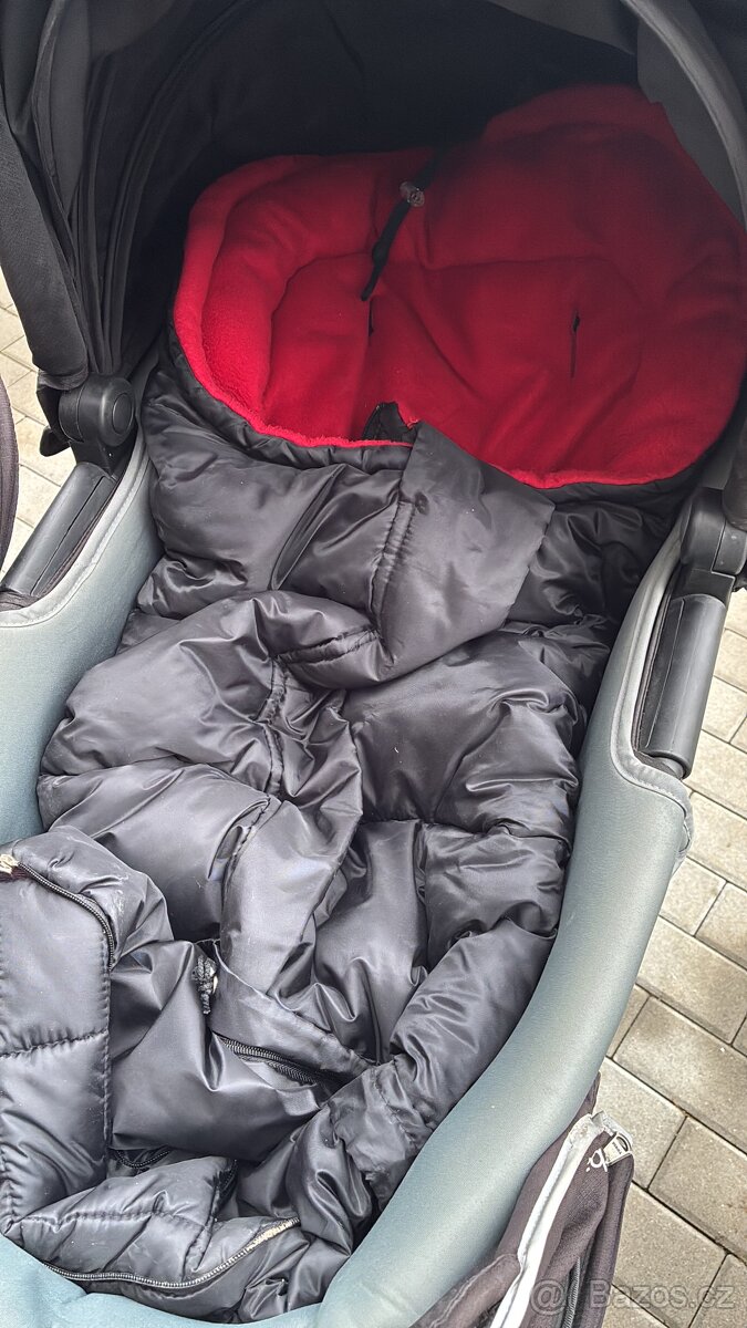 Kočárek pro dvojčata, nebo dvě děti různého věku. Jsme první majitele, kočárek je plně funkční, ale nese stopy běžného opotřebení. Jde o set s možností umístění korbičky(v setu i jednoduše demontovatelné držáky).