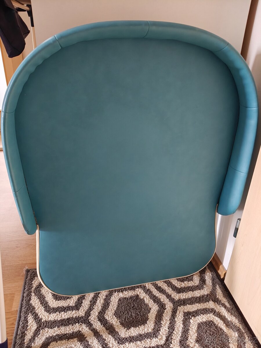 Modré čalounění v pořádku, zezadu trochu rez, na funkci nemá vliv.