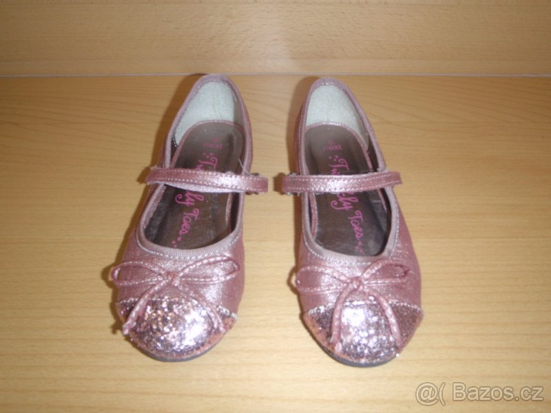 Prodám dívčí BALERÍNKY značky NEXT vel. 9 ve velmi pěkném stavu. Barva starorůžová, perleťová se třpytivými flitry na špičce. Délka vnitřní stélky je 17 cm. Botičky dobře drží na nožičce díky pásku přes nárt. Moc pěkné! Preferuji platbu předem na účet + poštovné nebo nabízím možnost osobního odběru v Pardubicích.