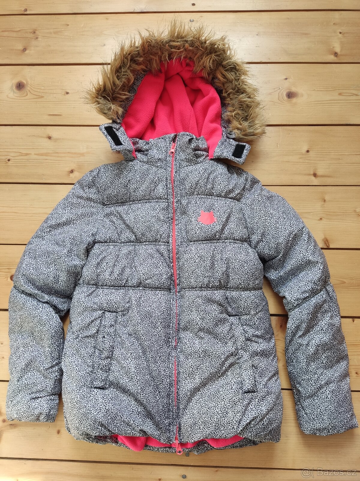 Zimní bunda, velikost 146-152. Na kožíšku na kapuci je videt, že je bunda nošená, ale kožíšek je na patenty a dá sa případně odepnout.