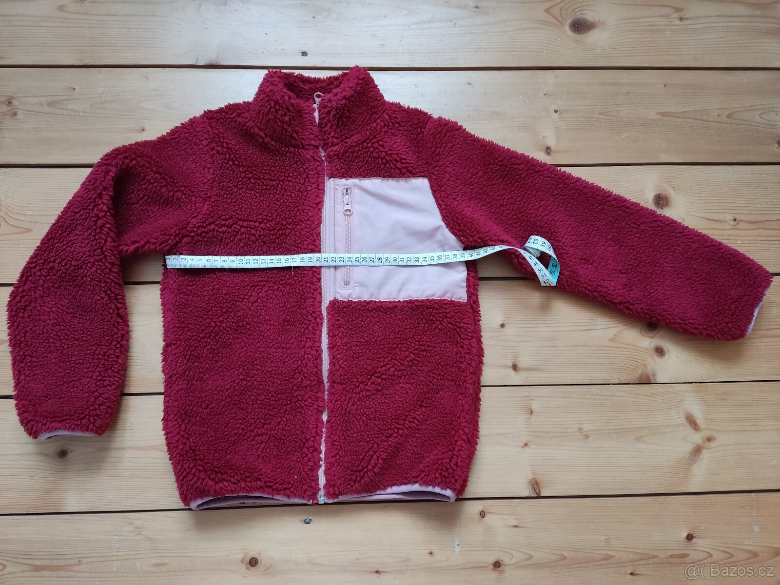 Teplá mikina velikost 134-140, rozměry viz. foto. Vypodšívkovaná bavlněným úpletem, na bocích švové kapsy, také náprsní kapsa na zip. Vhodná i jako přechodní bundička.