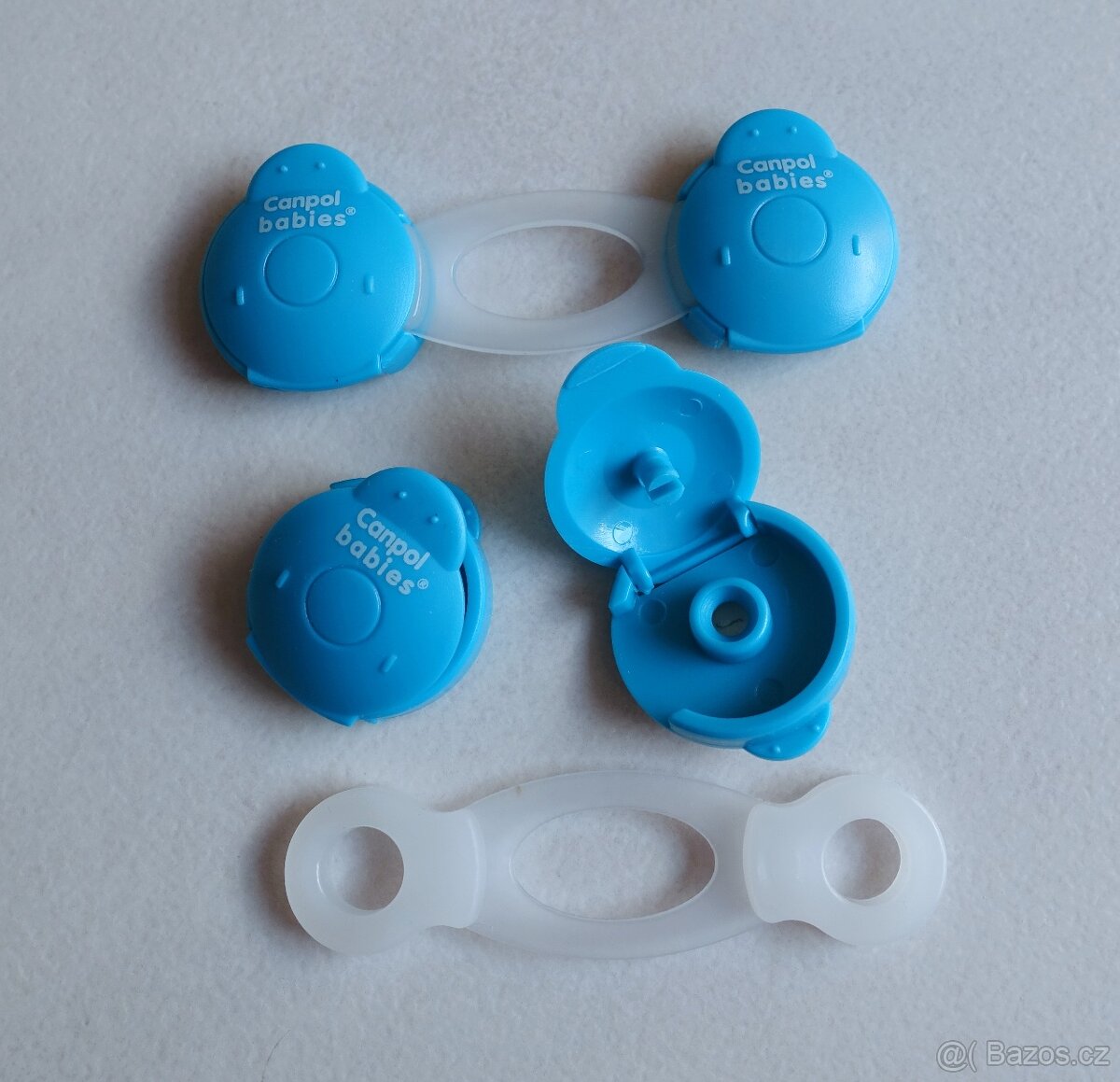 Plastové pojistky na šuplíky, dvířka. Nalepovací, nepoužité. Cena za oba 2 kusy.
