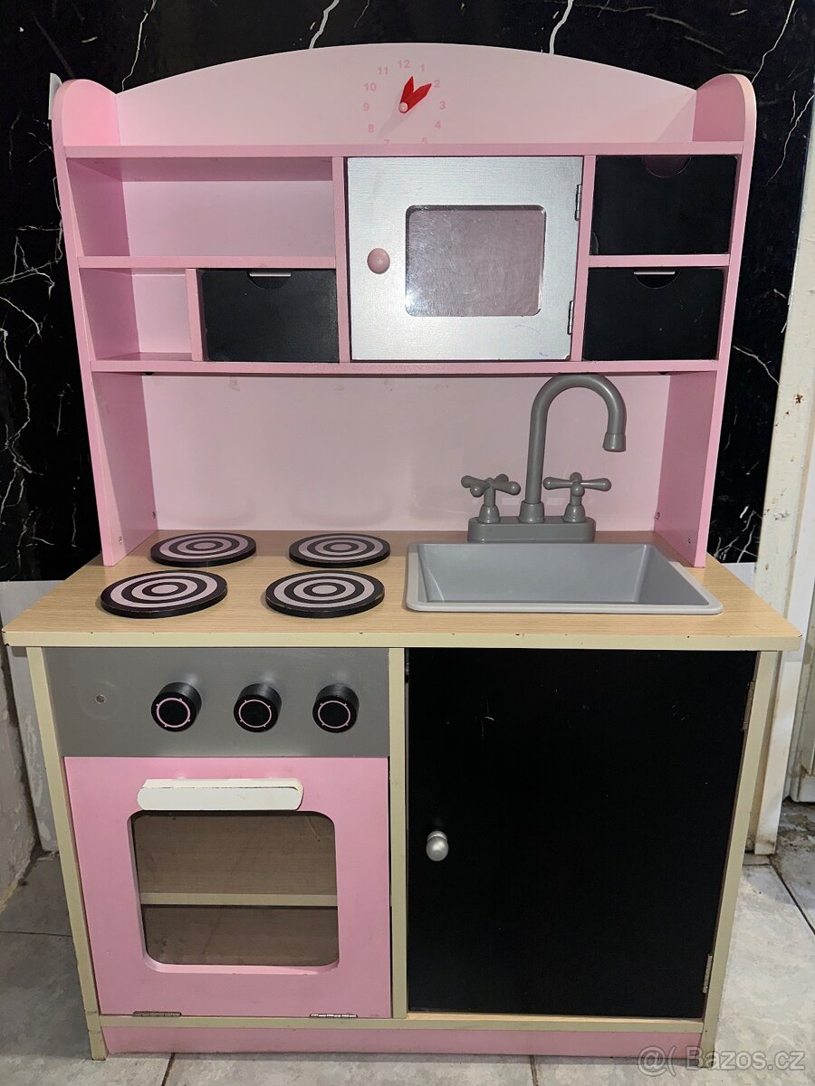Prodám dětskou kuchyňku v dobrém stavu , vybledly nám pánvičky po boku , a chybí čudlík ke sporáku, ze strany jsou tři menší dírky dcera k tomu měla přidělanou odkládací desku .