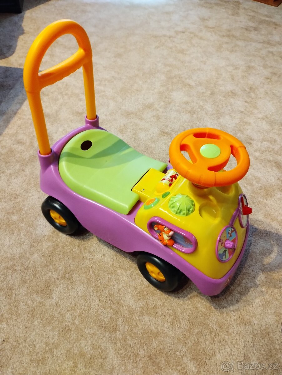 Prodám, odrážedlo v hezkém a top stavu. Používáno pouze v bytě bez domácích mazlíčků z nekuřácké rodiny. Naše malá si s ním strašně vyhrála. Auto vydává zvuky( troubí, zvuk motoru, melodie atd.) bliká, má otáčecí volant. Auto má zábrany proti převrácení se. Úložný prostor pro převoz drobnosti.Na 2 baterie AA.