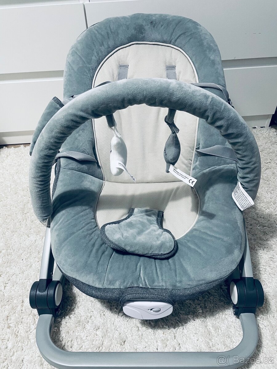 Prodám multifunkční polohovatelné lehátko/houpátko zn. BoJungle. Potah z velmi jemného plyše (snímatelný a pratelný), opěrka nastavitelná do 3 poloh, lehátko přehrává melodie a vibruje, odnímatelná hrazdička s hračkami, aretace proti houpání, max. nostnost 18 kg. Po složení velmi skladné, např. pod postelí nebo vedle nábytku. Top stav, bez vad.
