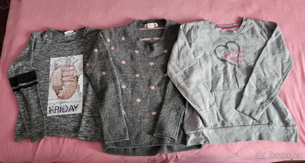 dívčí mikina 3ks, vel. 122/128 - [12.2. 2026]Podám 3ks dívčí mikina, vel. 122/128, pěkný stav, bez poškození. Cena 60 Kč/1ks. Zásilkovna, Balíkovna