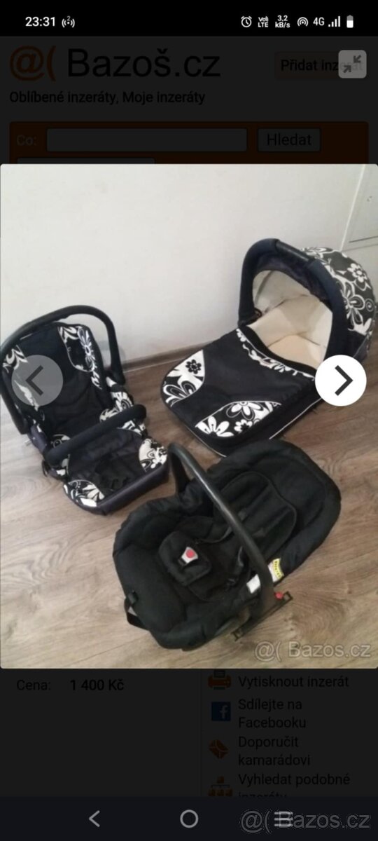 prostorná korbička - délka 80 cm, šířka 34 cm, hloubka 24 cm, polohování hlavičky do 6 poloh, výška uložení korby od země 55 cm, kompletně prací vnitřek korby, sklopná rukojeť pro přenášení korby, společná boudička i pro sporťák.
