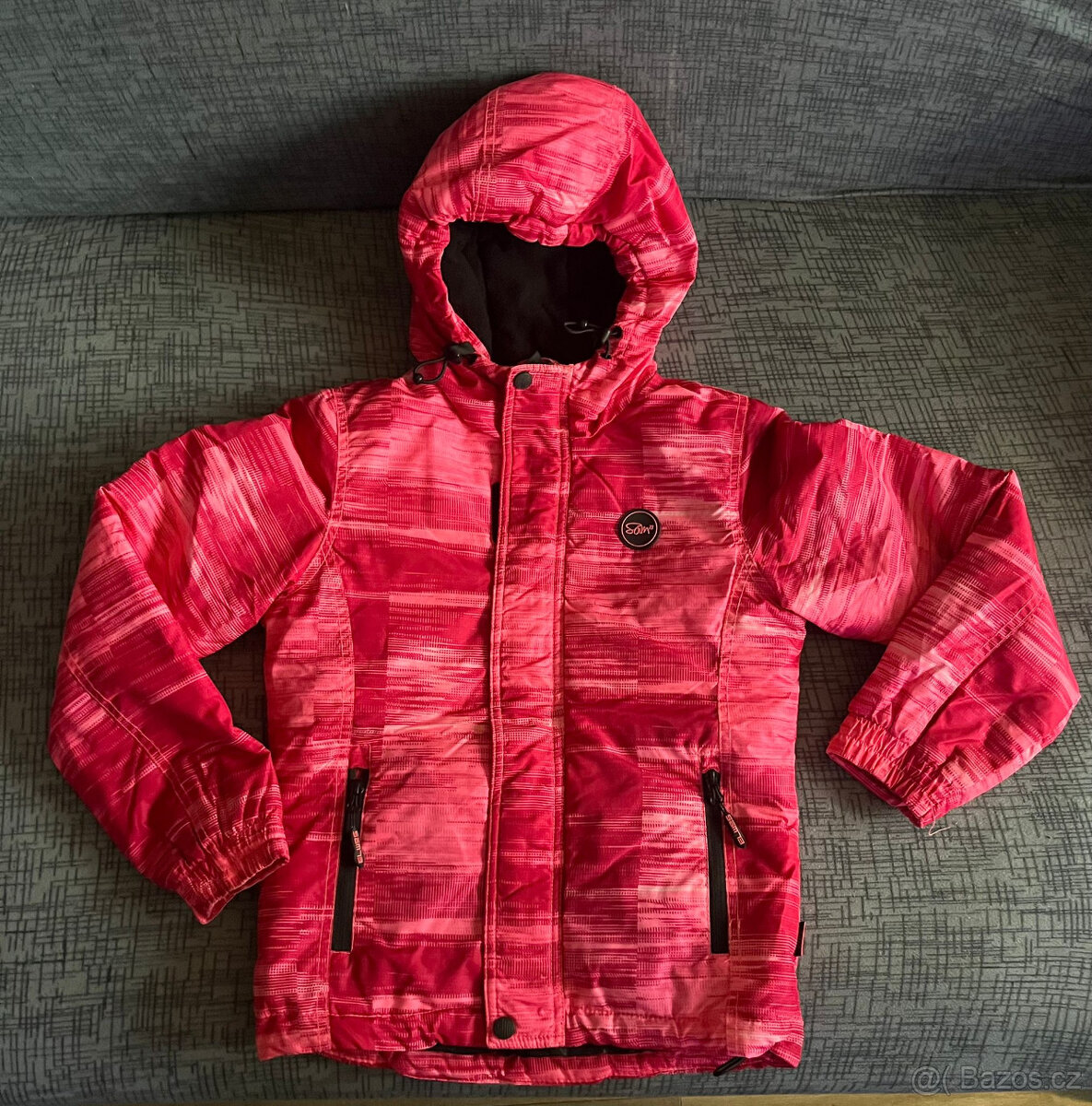 Prodám dívčí bundu zn. Sam73, vel. odhaduji 146, teplá, zimní, barva tmavě růžová, kapuce napevno, šířku rukávu možné upravit suchým zipem, ve spodním lemu a v lemu u kapuce "olivky" pro případné utažení, kapsy na zip, zapínání na zip + suchý zip. Celková délka 56 cem, rukáv od krku 64 cm, šířka 43 cm.