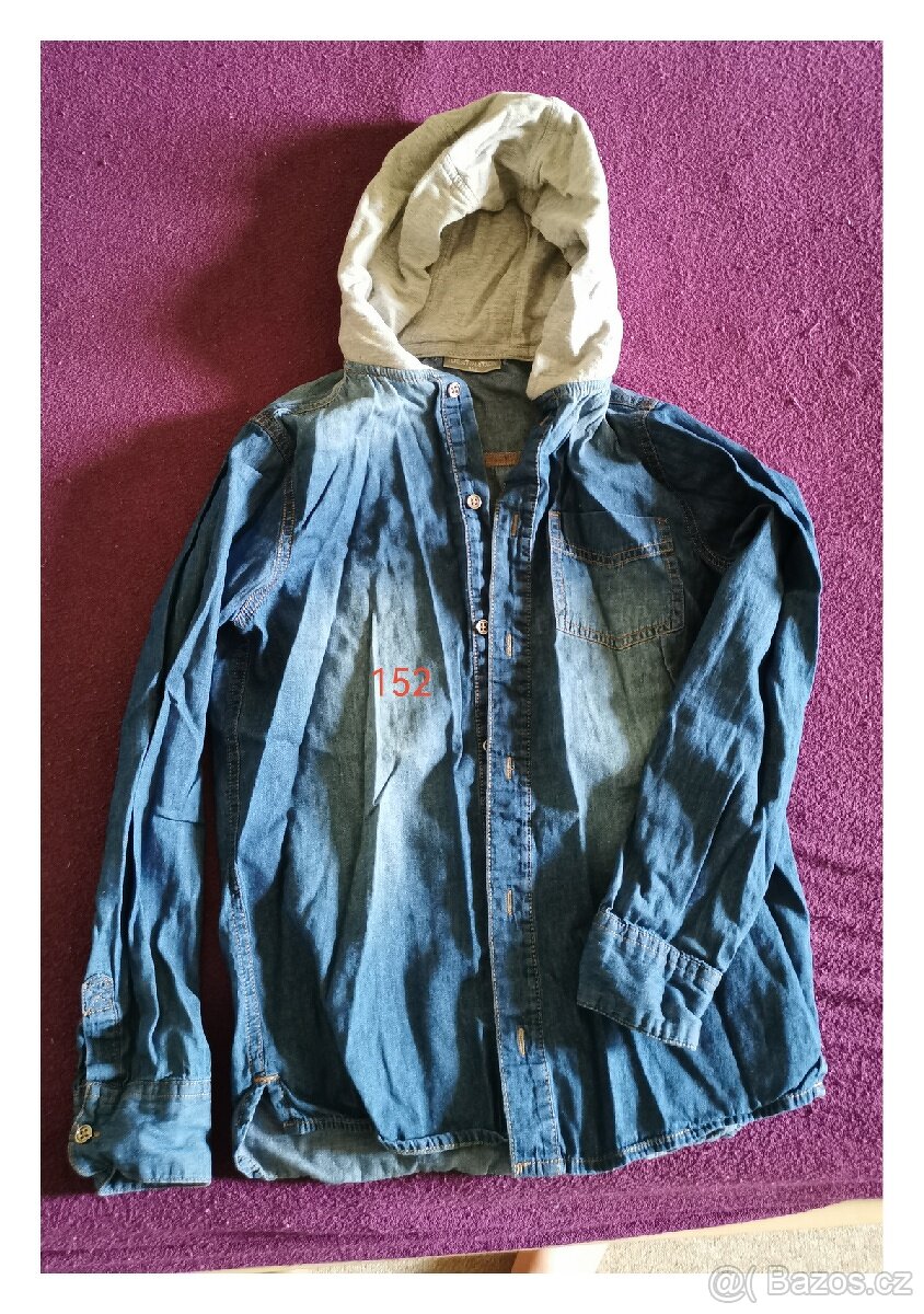 Tenká riflová košile s teplákovou kapucí vel. 152.Nenošená.Možnost zaslání