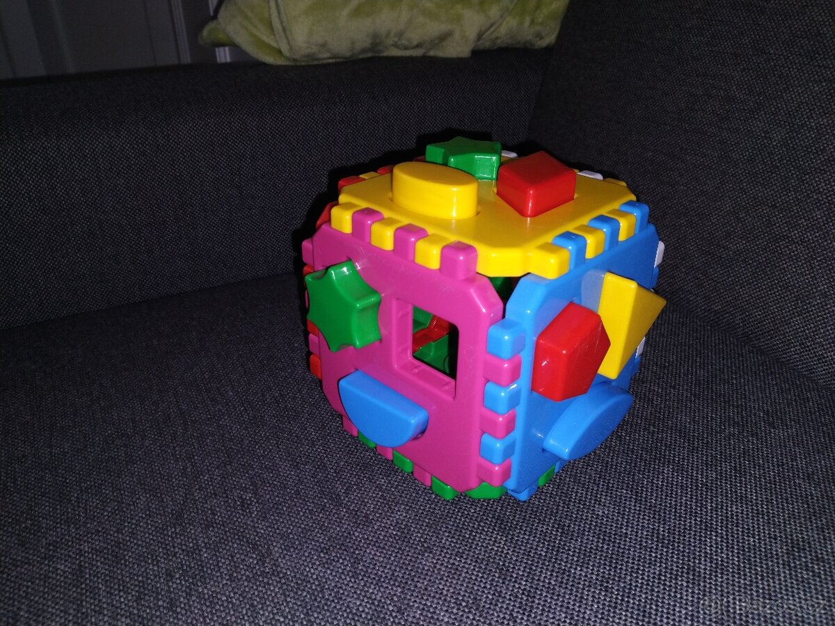 Klasická plastová vkládací kostka, která obsahuje 6 stran spojené ozubenými okraji. Tato jednoduchá hra rozvíjí zábavnou formou trpělivost, orientaci v celku, logické myšlení a motoriku. Dítě při hře získá další důležité dovednosti. Balení obsahuje: skládací tvary pro kostku a tvary, které lze prostrkávat otvory.