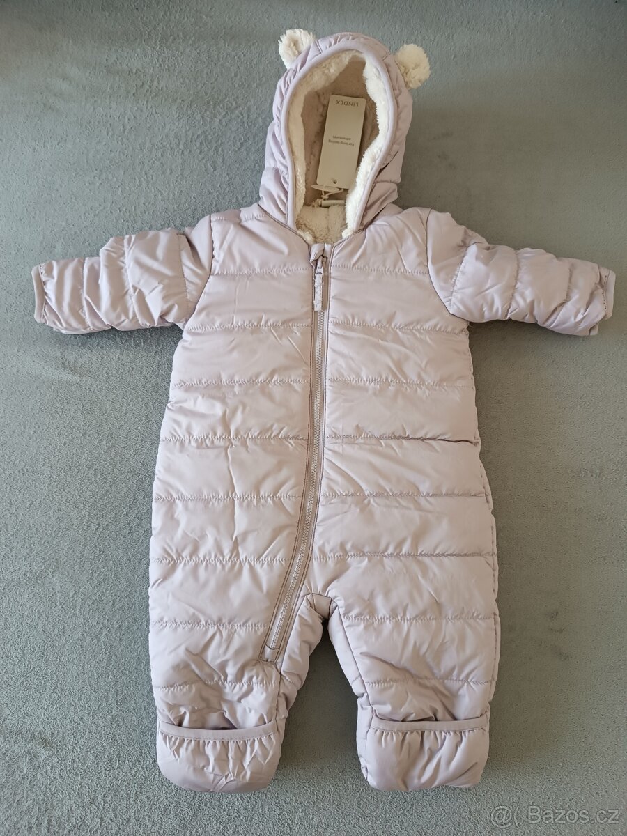 Lindex kombineza nova nevyuzita vel. 62. Rukavy i nohavice lze ohrnout, takze neni potreba boticek ani rukavicek.