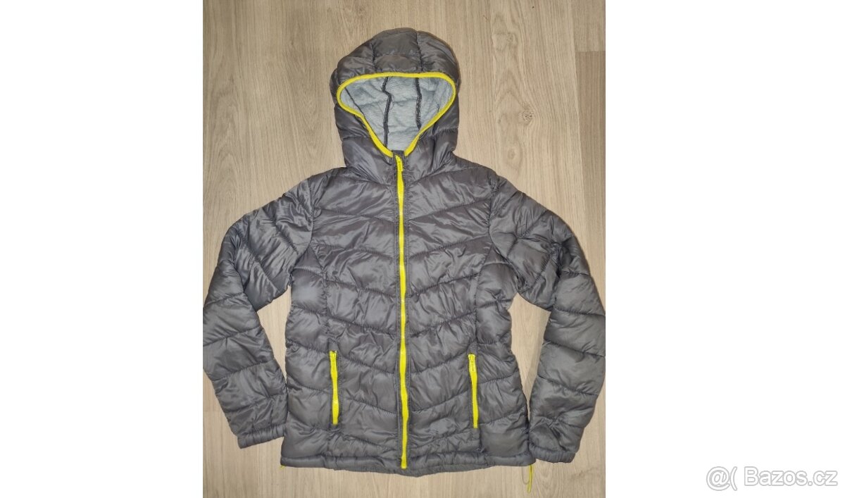 Bunda zimní (zn. Crivit)- vel.158, barva stříbrná; Rozměry: délka 56cm , šířka 48cm , délka rukávu od kapuce 69cm.