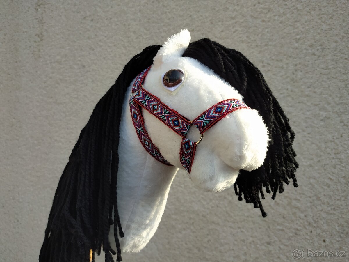 Prodám nového hobby horse světlé barvy s hnědýma očima a dlouhou černou hřívou. Indiánská ohlávka a tyč jsou v ceně, dokoupit lze otěže vodítko nebo nákrčák. Celková délka je 75 cm, váha cca 430 g.