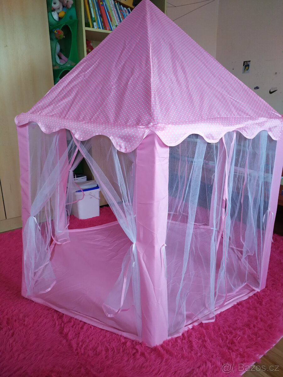 Moc hezký nový domeček/stan/altán pro malé princezny. Výška cca 140cm, průměr cca 140cm. Nový, pouze postavený.
