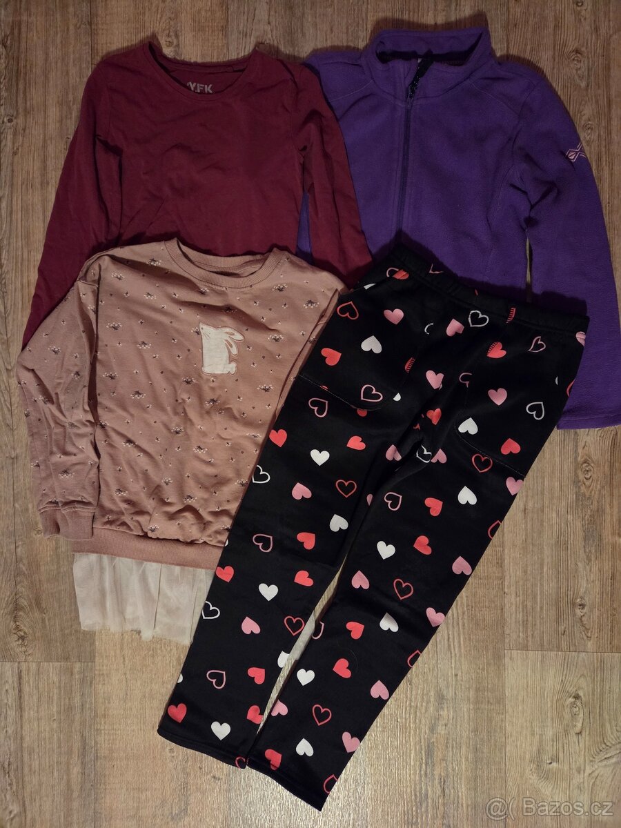 Zateplené legíny, mikina na zip, triko dlouhý rukáv, mikinové šaty,nošené, pěkné