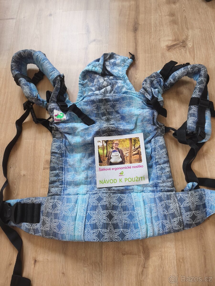 Ergonomické nosítko Be Lenka 4Ever Neo ve vzoru Mandala Blue. Jedná se o šátkové nosítko, které roste s dítětem a je vhodné přibližně od tří měsíců (nebo velikosti 62) do tří let (velikosti 104 a maximální hmotnosti 20 kg).