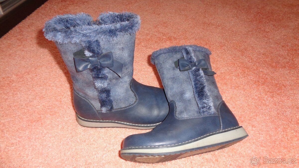 Prodám krásné modré kozačky vel. 30 (stélka 18,5 cm), zn. Baťa. TOP stav, vč. dokladu. PC 799,- Kč.