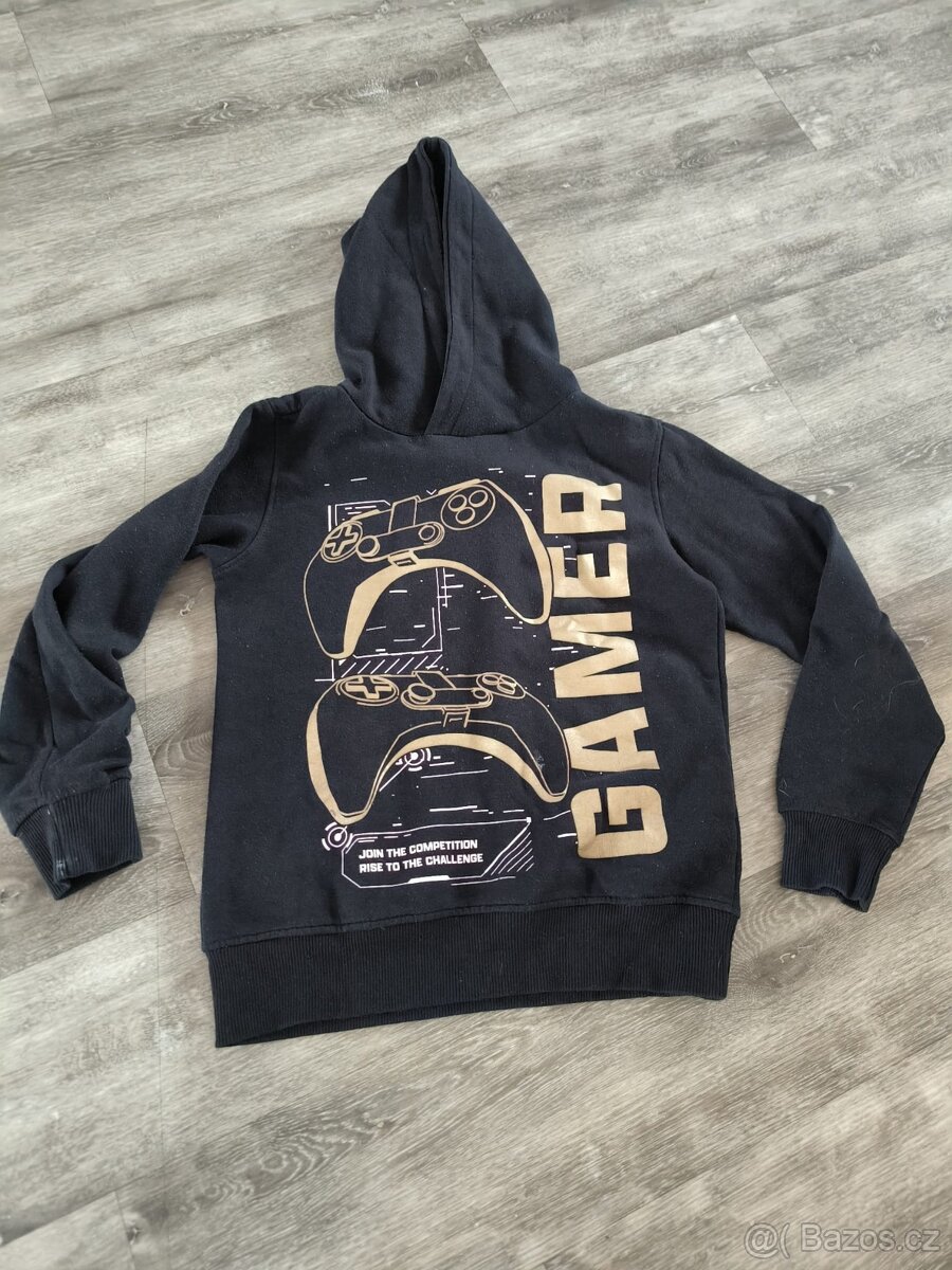 Prodám dětskou mikinu, černo zlatá, vel. 134/140, pěkný stav, lehký žmolík