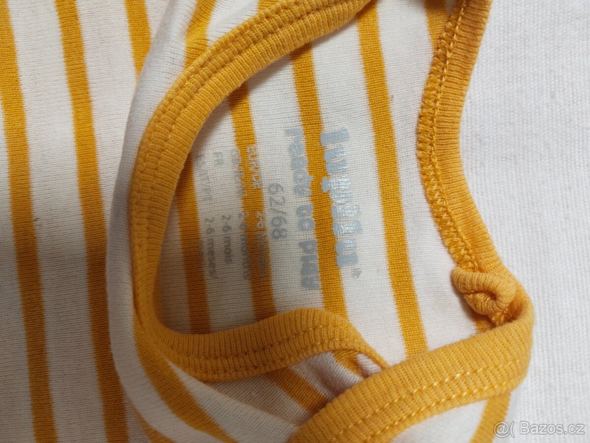 Obsahuje 11x body s dlouhým rukávem, 12 ks body s krátkým rukávem, 10x kalhoty, 5x pyžámko, mikinka, overálek, čepička, 1x šaty, 18 párů ponožek, 4x punčocháče (jedny mají cedulku 62/68, ale js ...