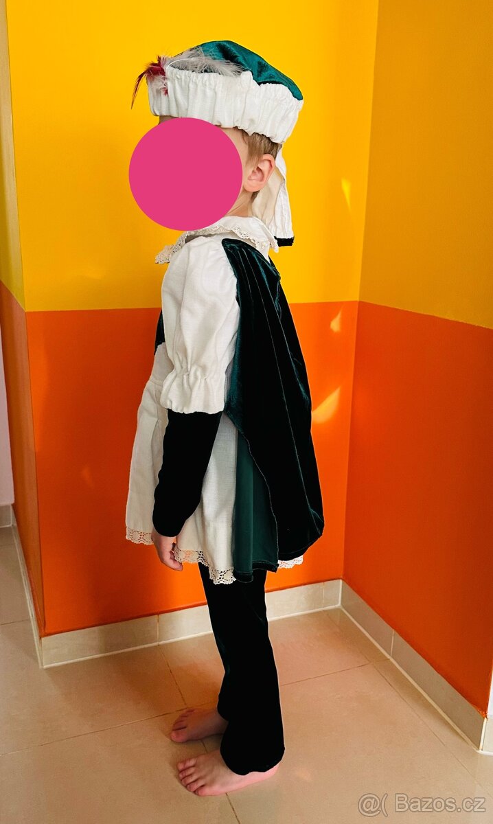 Prodám originální krásný kostým prince, kalhoty satén + helenka s krajkou a pelerýnou + čepec. bez Fleků bez dírek pouze kalhoty malinko šislá kolena.