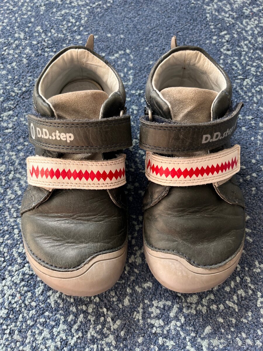 Prodám dětské celoroční boty D.D. STEP S073-223 Royal blue, velikost 30, velmi dobrý stav (lehce ošoupané paty, viz foto). Jedná se o celokoženou botu s motivem žraloka, vhodné i pro širší nožku a vyšší nárt.