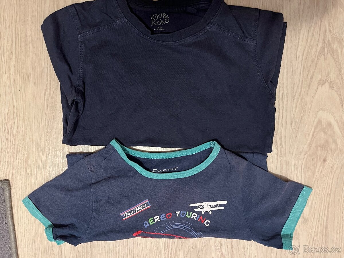 2 chlapecká trika krátký a dlouhý rukáv, nošená v pořádku, kus 25Kč, vel. 104/110