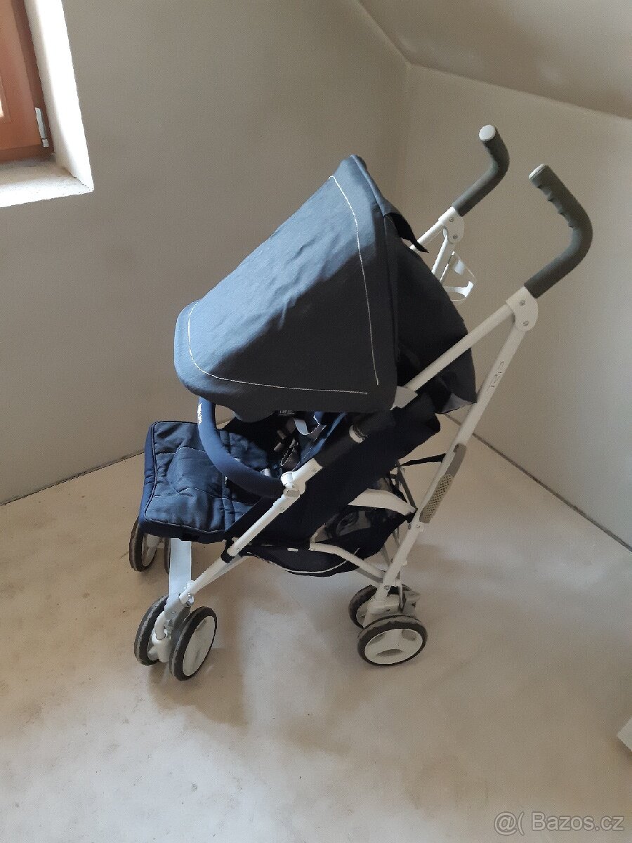 Prodám lehký golfový kočárek Inglesina Trip ve výborném stavu s odlehčenou konstrukcí -7 kg, po jednom dítěti. Polohovací, opěrka zad i nohou.Odpružený, pláštěnka, madlo,dr žák na pití, skladný, aretovací otočná kolečka,5 bodové nastavitelné pásy, max.nosnost 25 kg, od 3 měs.
