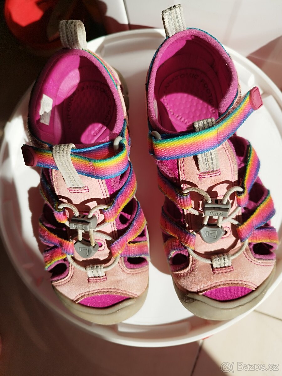 Prodám duhové sandály Keeny, velikost 31, délka stélky 19,5 cm. Nošené půl sezóny. Lze zaslat i Zásilkovbou za 89 Kč.