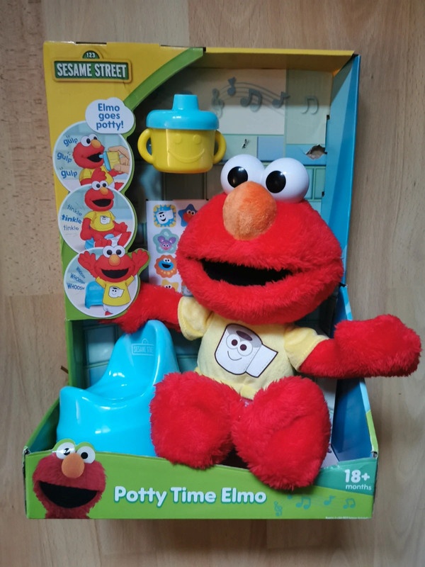 Plyšový Elmo vydává zvuky a fráze V ANGLIČTINĚ, pomůcka pro výcvik na nočník pro děti od 18 měsíců.