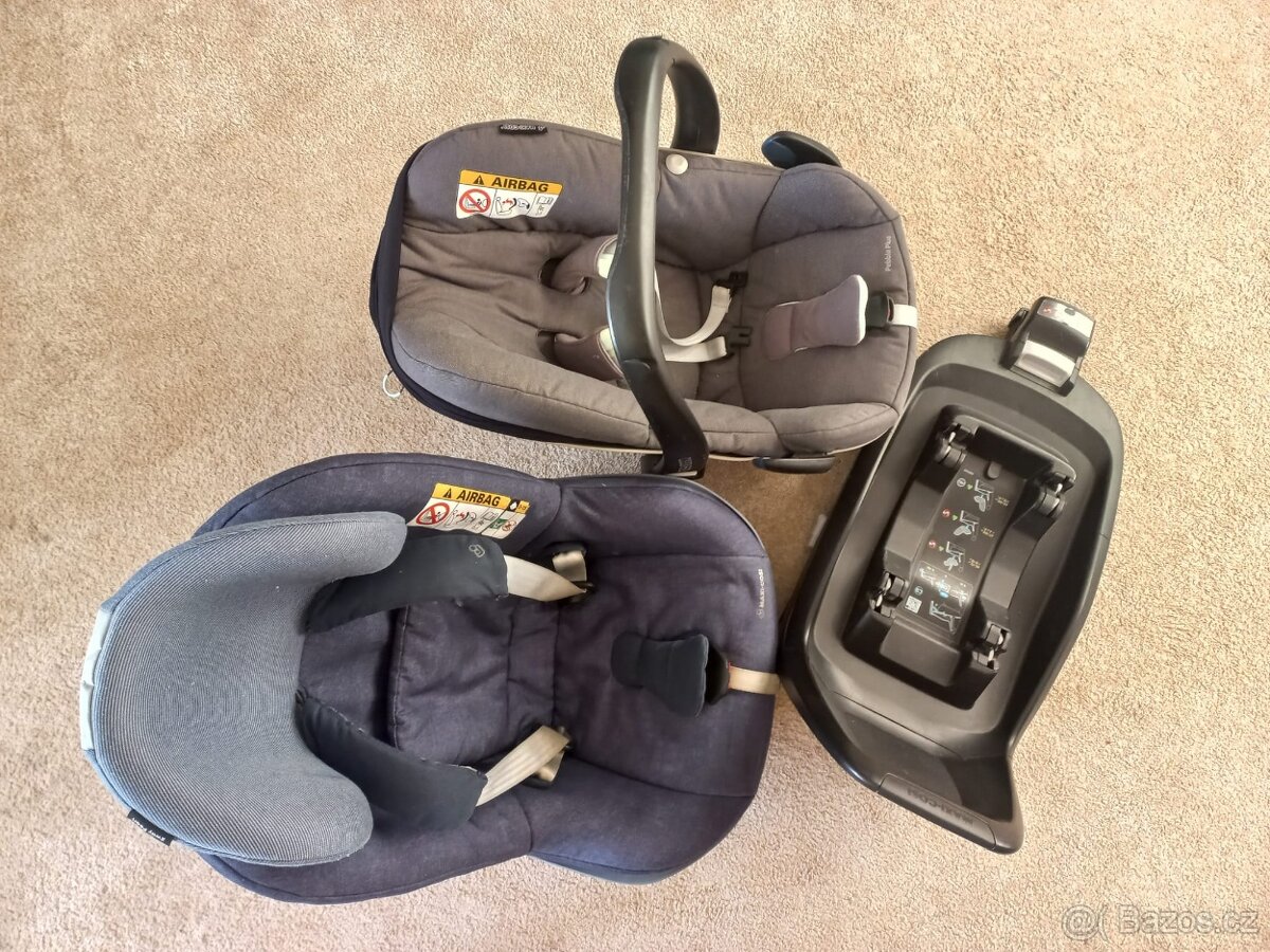 Prodám komplet 2 autosedaček -Maxi-Cosi Pebble Plus (0-75 cm) a Maxi-Cosi 2way Pearl (67-105 cm). Součástí je i základna Maxi-Cosi 2wayFix, do které se obě sedačky upevňují. Nabízí možnost umístění sedačky proti směru jízdy. Základna se připevňuje do auta pomocí úchytů Isofix. Součástí "vajíčka" je i novorozenecká vložka pro lepší pohodlí malého miminka. Sedačka má také stahovací ochranou stříšku. Pouze osobní vyzvednutí v Ústí nad Labem.