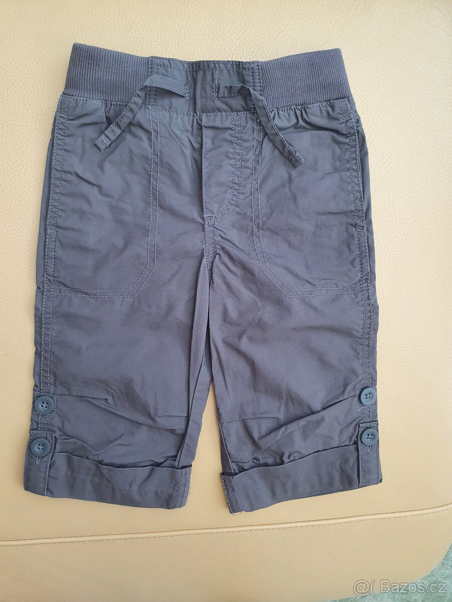 Téměř nové bermudy, jednou nošené. Pro štíhlé batole, zn. F&F. Vel.1,5 až 2 roky. Letní lehoučký materiál. Bermudy lze prodloužit odepnutim knoflíků na letní kalhoty po kotníky nebo naopak ještě zkrátit na kratší bermudy. Regulace délky na knoflíky. Jinak v pase zašitá guma. Velmi praktické, 2v1. A jsou šik.