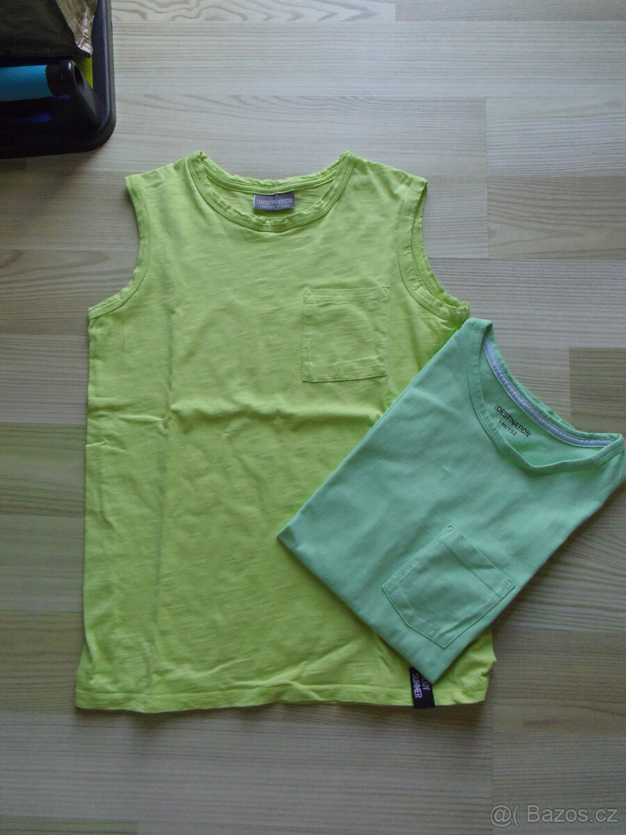 8x trika 134-140 - [6.2. 2026]modré 52 cm, zelené 49 cm, CENA ZA JEDNO 50 kč,,,,