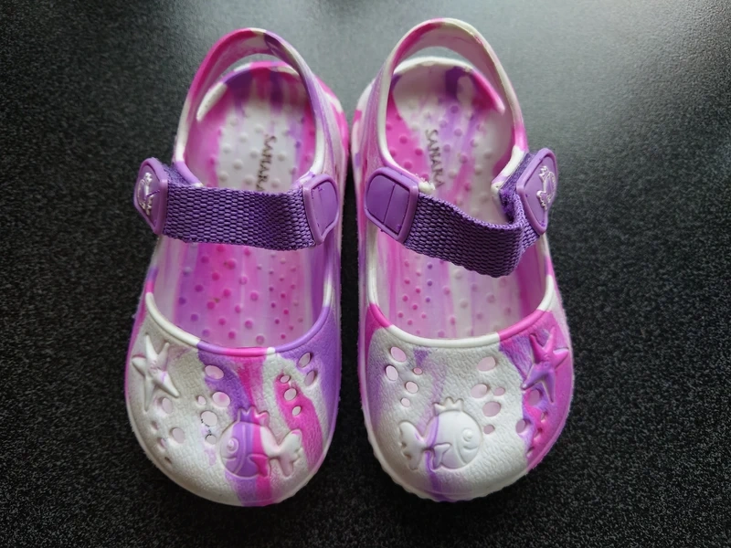 Set- Letní dívčí sandálky - [4.1. 2026]Prodám dívčí sandálky, jedny lesklé, princeznové, jsou krásné, akorát mají trochu odřené špičky. Značka H&M.