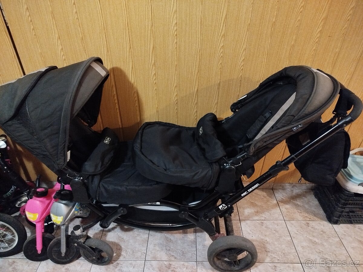 Prodám sourozenecký kočár značky ABC design. 1x korba, 2x sporťák, 2x kabelka z toho jedna originál, pláštěnka, rukávník, stínítko. Vše čisté vyprané. Cenu nabídněte.