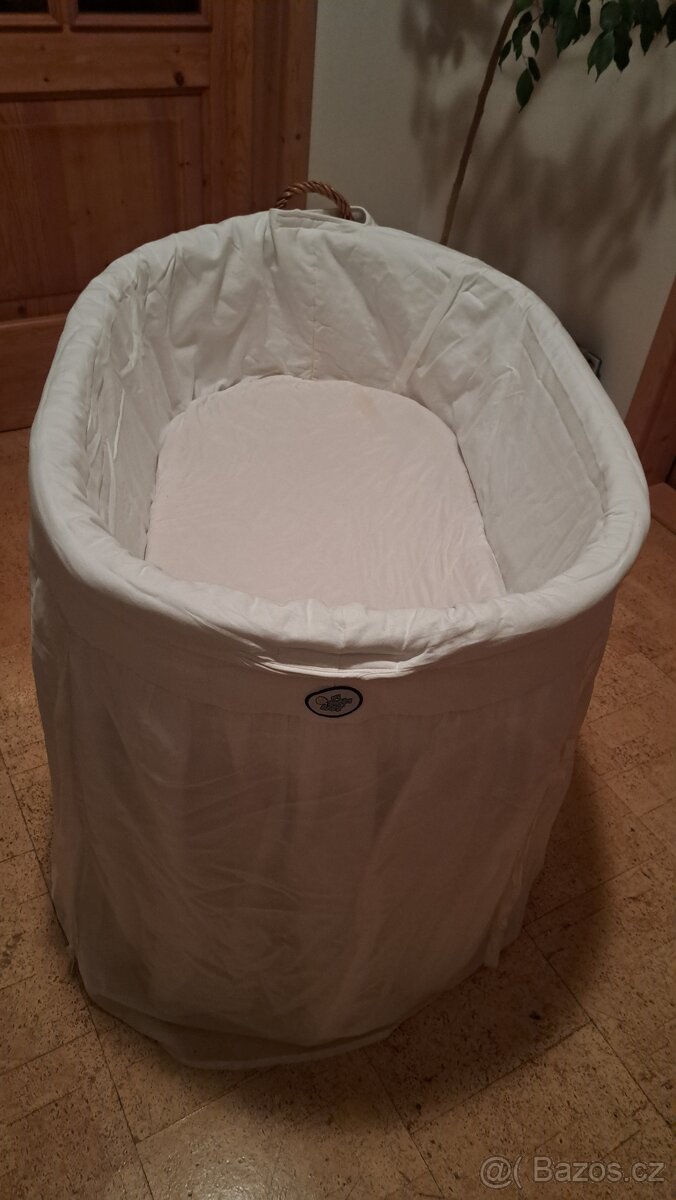 Proutěný košík s kolečky + matrace molitan s odepinacim pracim potahem + přehoz (uvnitř mozno žehlit) zn.My sweet baby, používaný, ale dobrý stav. Jen osobní předání v Praze.