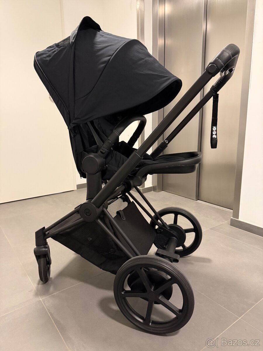 Prodám kočárek CYBEX E-PRIAM v barevném provedení podvozek + sporťák all black. Používán cca 2 roky. Koupeno duben 2023. Na kočárku jsou viditelné odřeniny od běžného používání. Součástí je i pláštěnka + přidám držák na nápoje a deštník. Kočárek sám houpe na 3 úrovně přes aplikaci + pomáhá do kopce a brzdí z kopce. Kočárek je profesionálně vyčištěný.