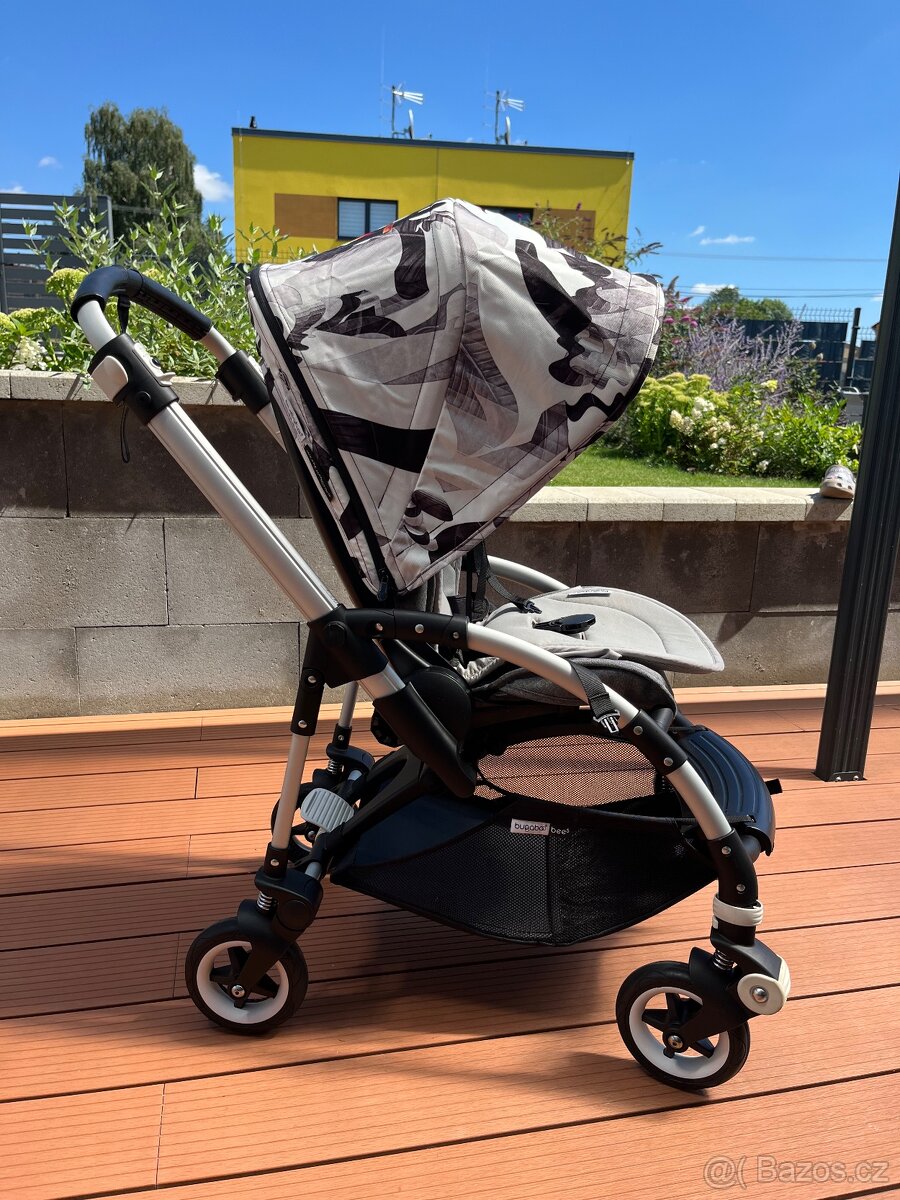 Prodám kočárek Bugaboo Bee5, po 1 dítěti. Konstrukce je stříbrná, kryty koleček bílé. Stříška je limitovaná edice We are handsome. Sezení Grey melanže. Originální pláštěnka, podložka šedá originál. Úplně nové kryty rukojeti. Žlutý slunečník originál součástí.