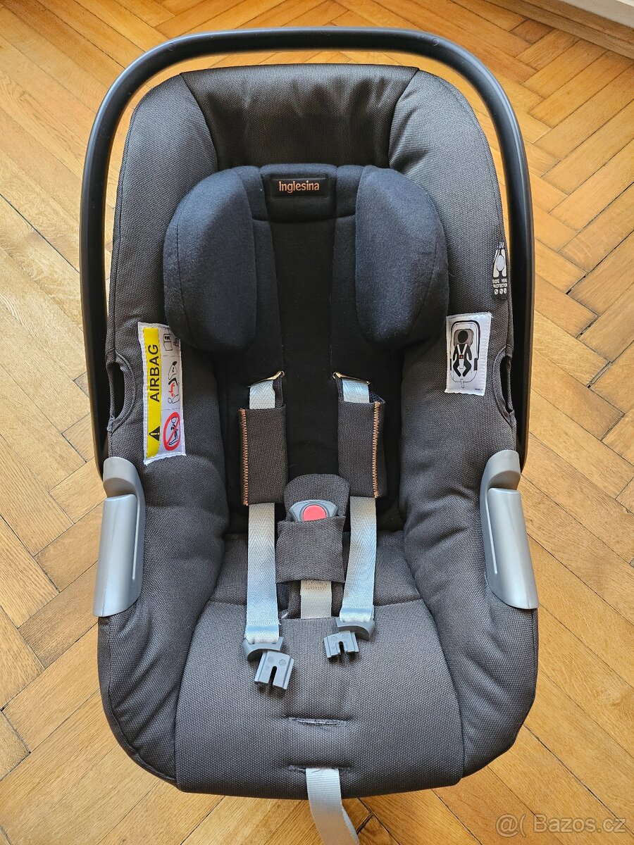Půl roku využívána autosedačka značka INGLESINA, TOP stav s novorozeneckou vložkou a 360° otočná báze isofix.